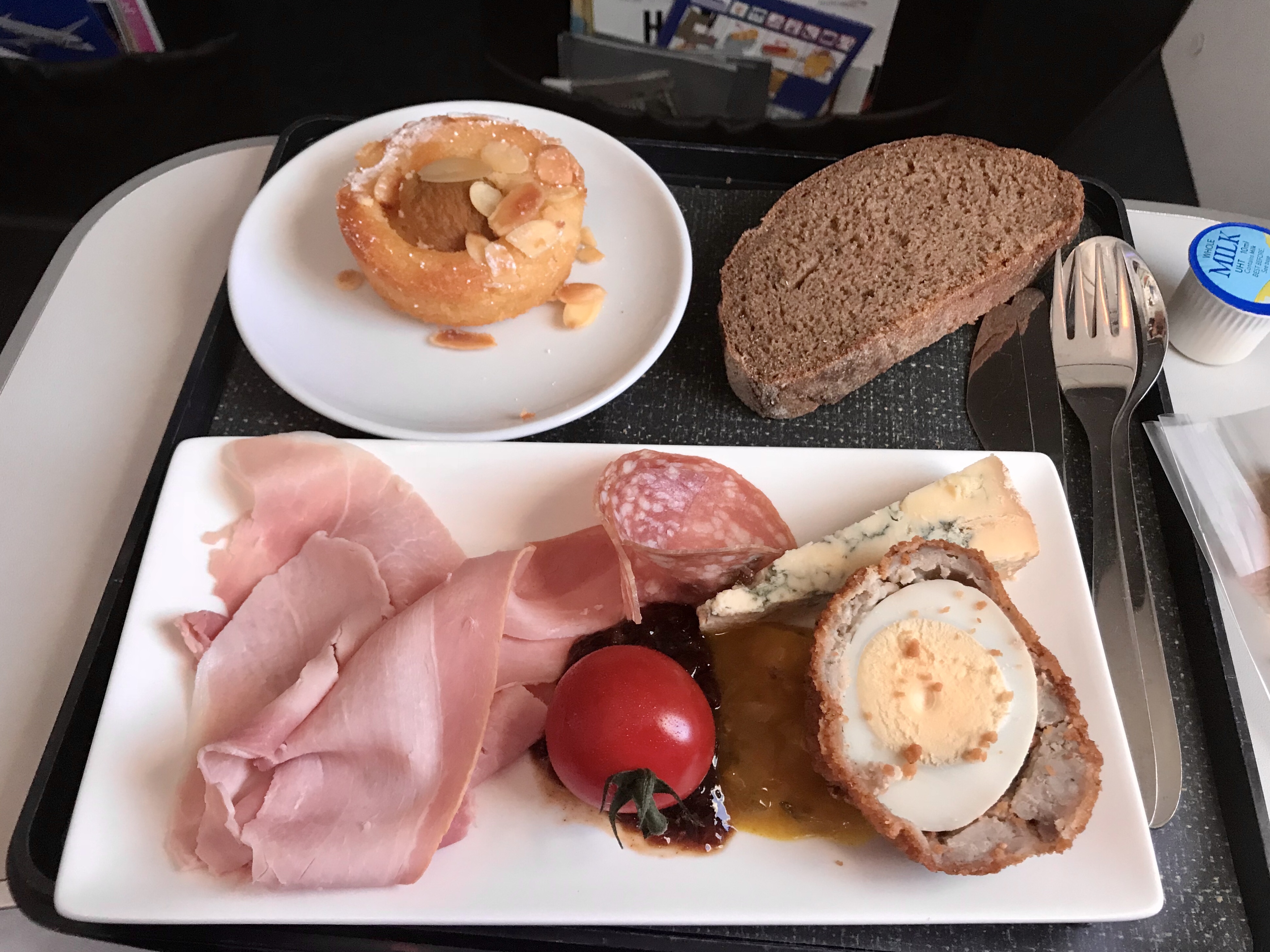 As soon as the crew were released from their seats that started the service, coming round offering either afternoon tea, or a ploughman’s lunch. I decided to go for the later, as this was going to be a long day, and I would need something in my stomach to soak up the alcohol. I did have a gin and tonic to go with it, but there are somethings I can not resits.