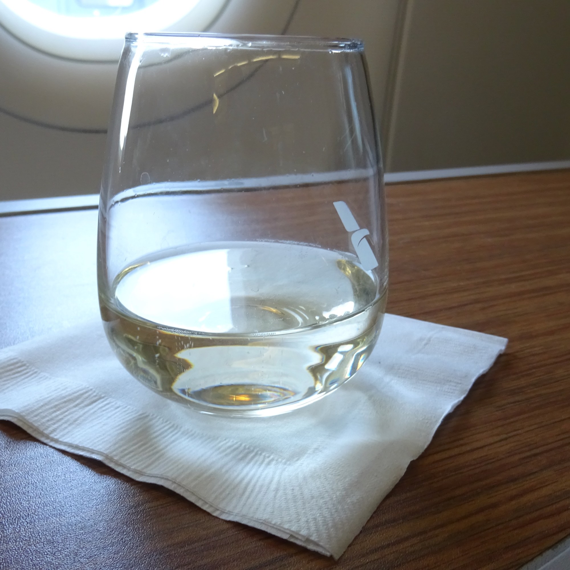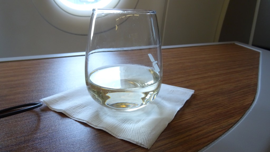 Having been one of the first to board at gate 7 and soon comfortably installed in my seat the crew soon came round and offered me a glass of champagne to start the day. Amenity kits and menus followed, as well as the rest of the passengers. It was not long before we are pushing back from the gate and were on our way to runway 22 L for our departure.