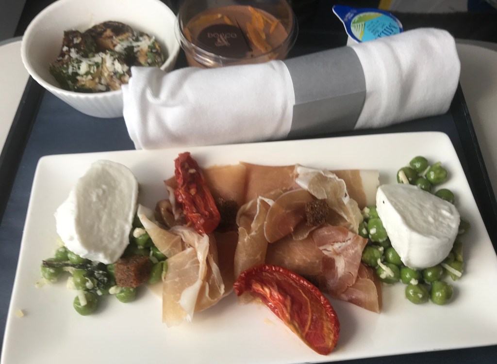 I chose the cured ham and mozzarella cheese salad as my dinner, along with my habitual G&T.